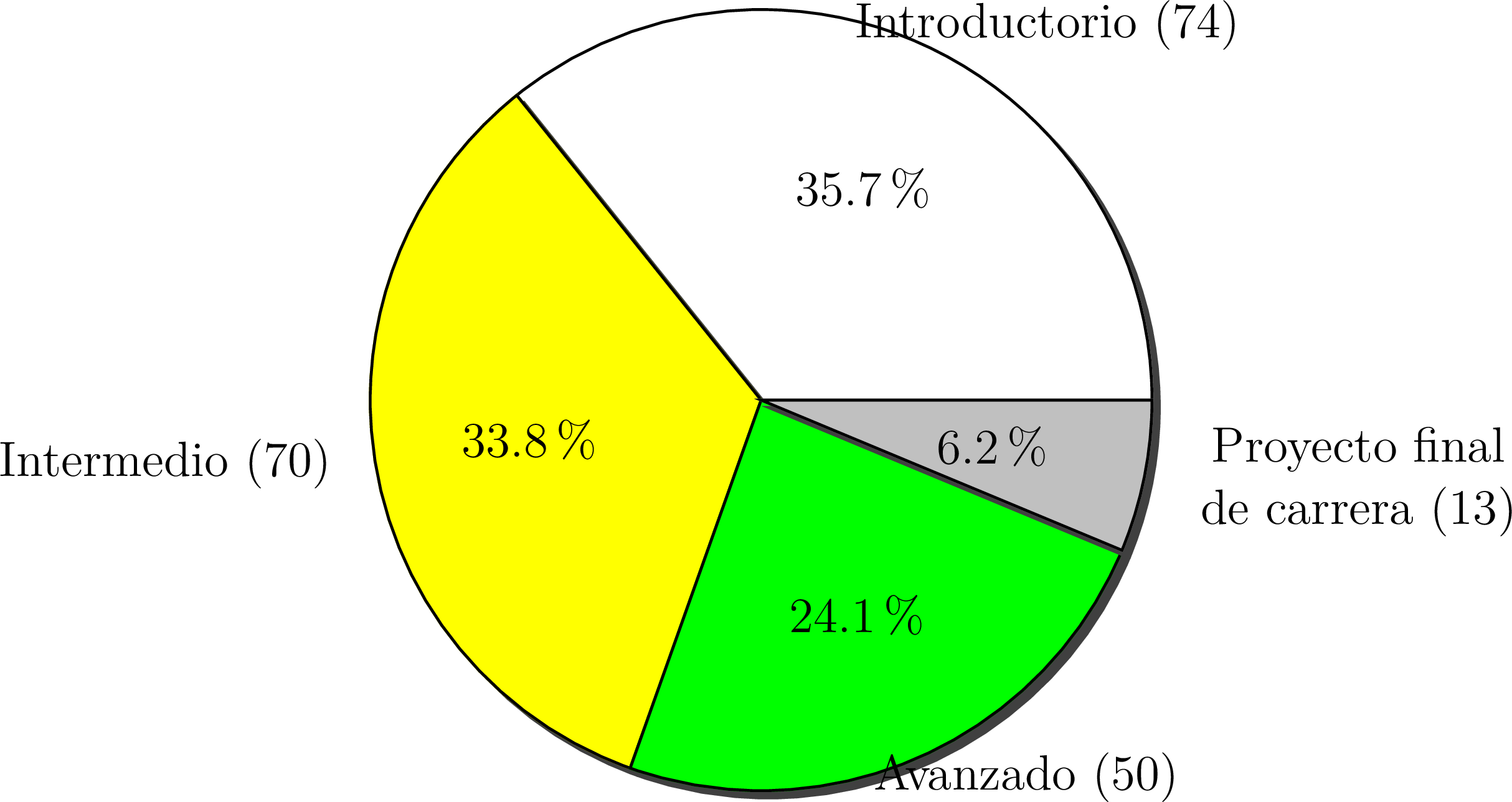 Esta propuesta puede ser analizada por el número de créditos dedicados a cada área, por niveles de cursos (Introductorios, Intermedios, Avanzados y Proyectos).